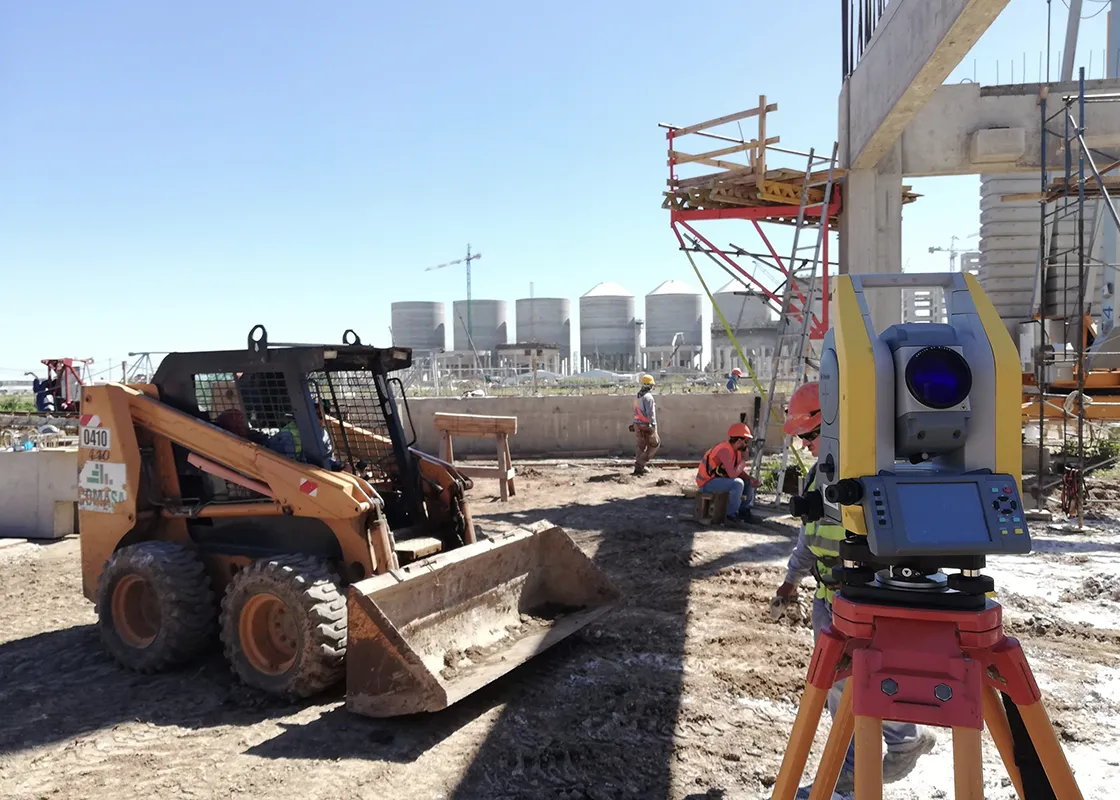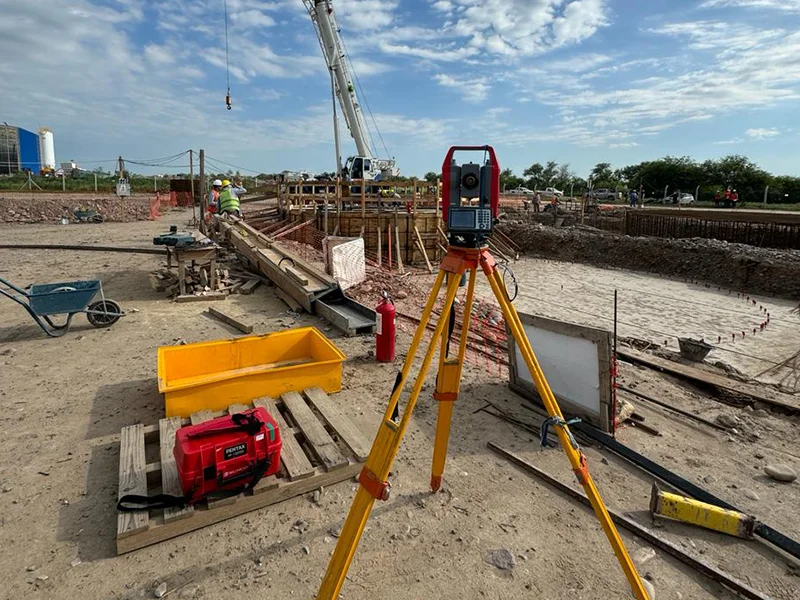 - Replanteos topográficos para la correcta colocación de equipamientos pesados.